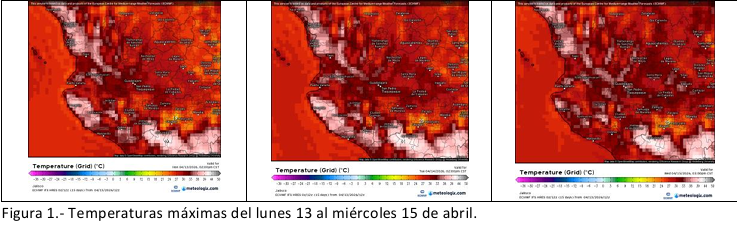 - Centro (hasta 35 °C en AMG y posibles superiores en el resto de la región)