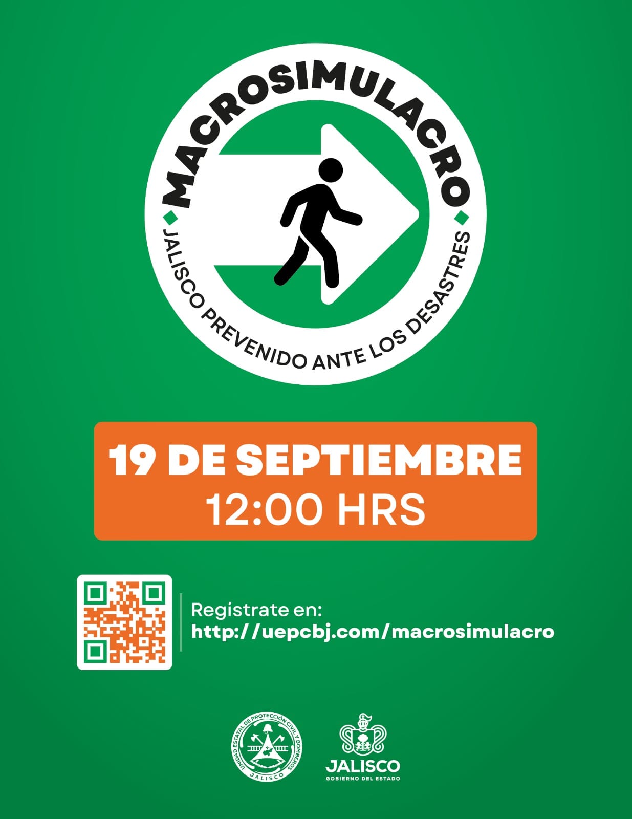 Para fortalecer la cultura de la prevención y mejorar la capacidad de respuesta de la población, Jalisco se suma al Segundo Macrosimulacro Nacional 2025, convocado para el viernes 19 de septiembre a las 12:00 horas, bajo la hipótesis de un sismo de magnitud 8.1 con epicentro en las costas de La Huerta, Jalisco.