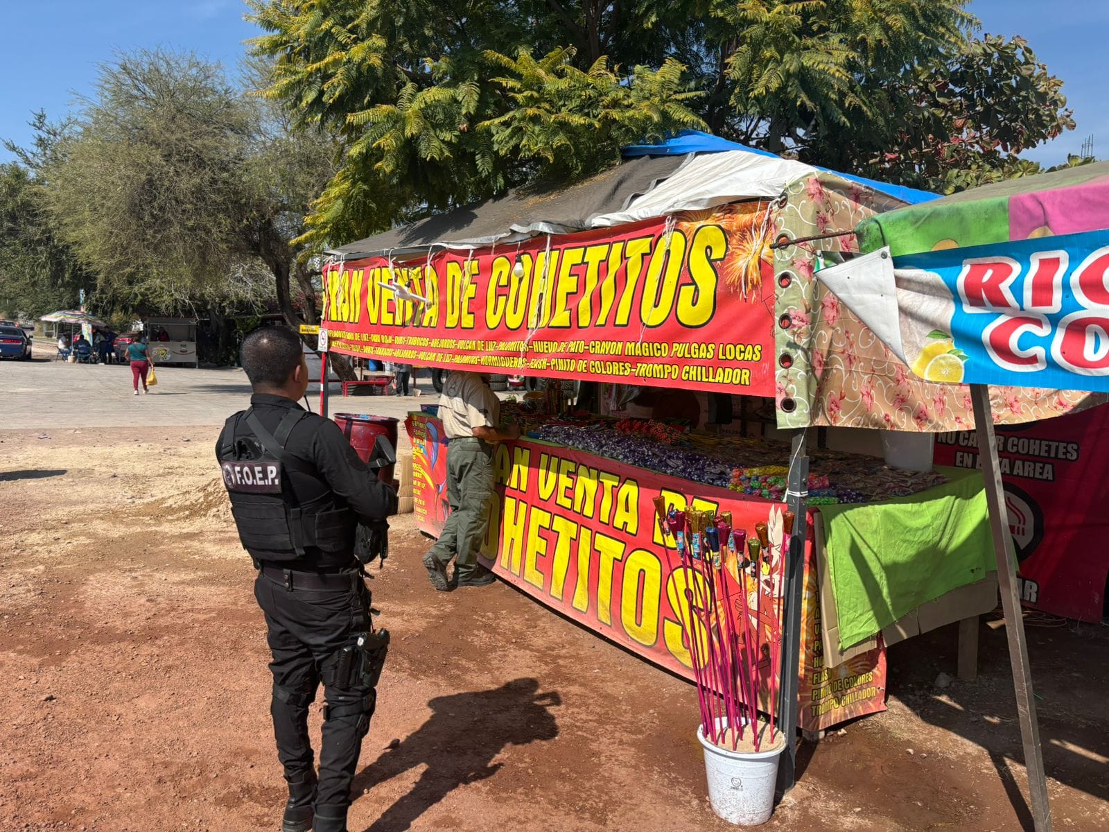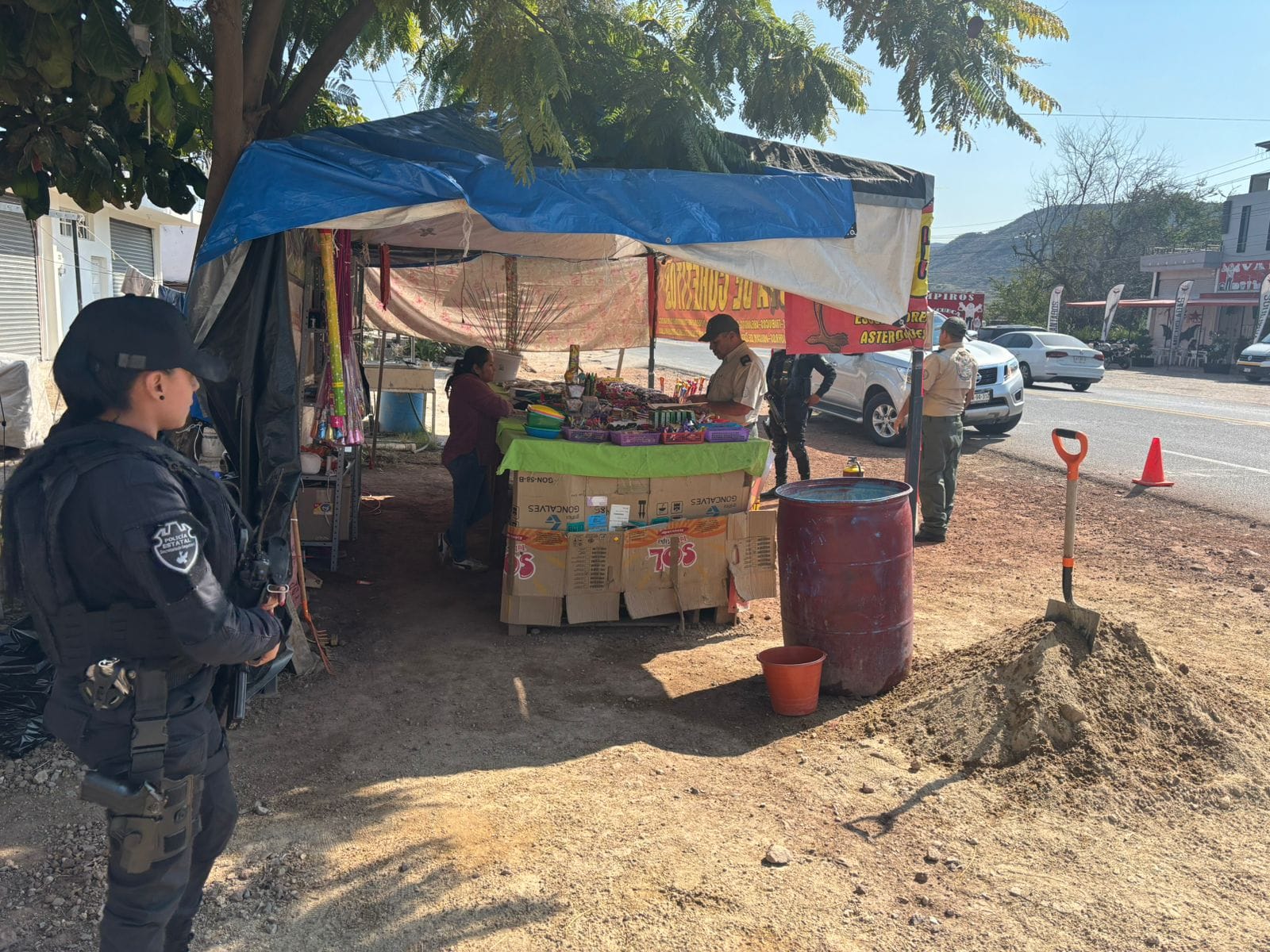 Con el objetivo de prevenir accidentes y proteger la integridad de la población, oficiales de esta corporación, en coordinación con personal de la Seguridad Pública del Estado, realizan recorridos de supervisión en diferentes puntos carreteros para el decomiso de productos elaborados a base de pirotecnia.