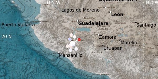 - Dos eventos continentales, con magnitudes de 3.3 y 3.5, localizados en los municipios de Autlán de Navarro y Tamazula de Gordiano.